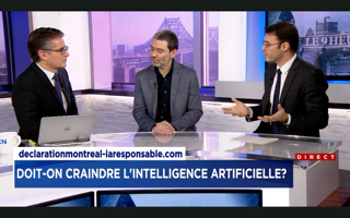 Marc-Antoine Dilhac, à l’émission Le 9 heures, à LCN, Doit-on craindre l’intelligence artificielle? À voir, écouter et lire: Yoshua Bengio, dans le journal Le Devoir « La communauté de l’intelligence artificielle a bien fait ses devoirs« . Martin Gibert à l’émission La sphère, à Radio Canada et à l’émission Je vote pour la science, à Radio Ville-Marie.